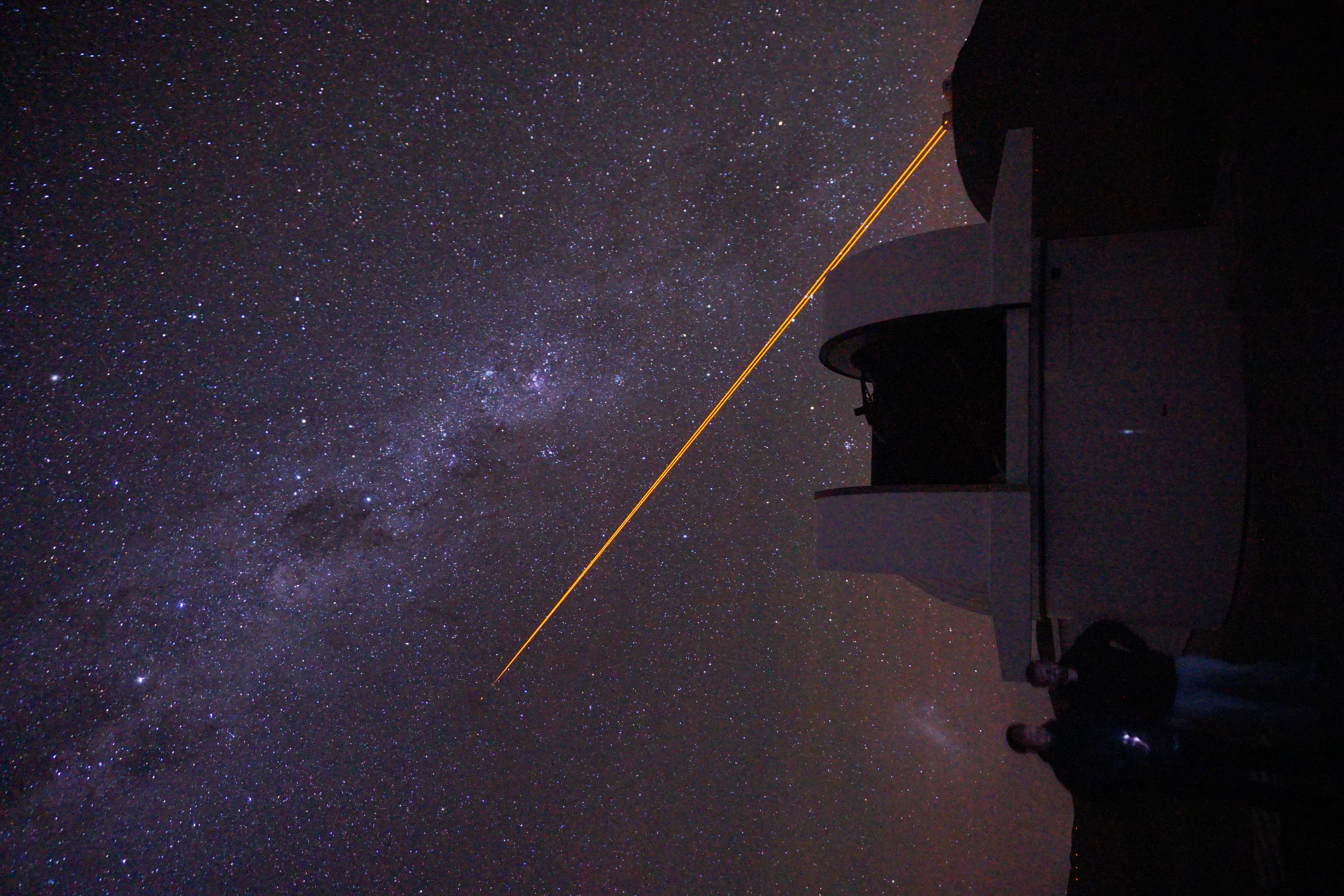 In April/May 2019, I returned to NACO with my collaborator Julien Girard to follow-up this detection and search for time-variability in the polarization signature over 4 nights. During these nights we were also able to obtain simultaneous photometric monitoring with the Speculoos (pictured below) and Trappist telescopes in order to match variations in the targets brightness with polarization variability. In this photo VLT can be seen in the top-right. We are currently processing this data.