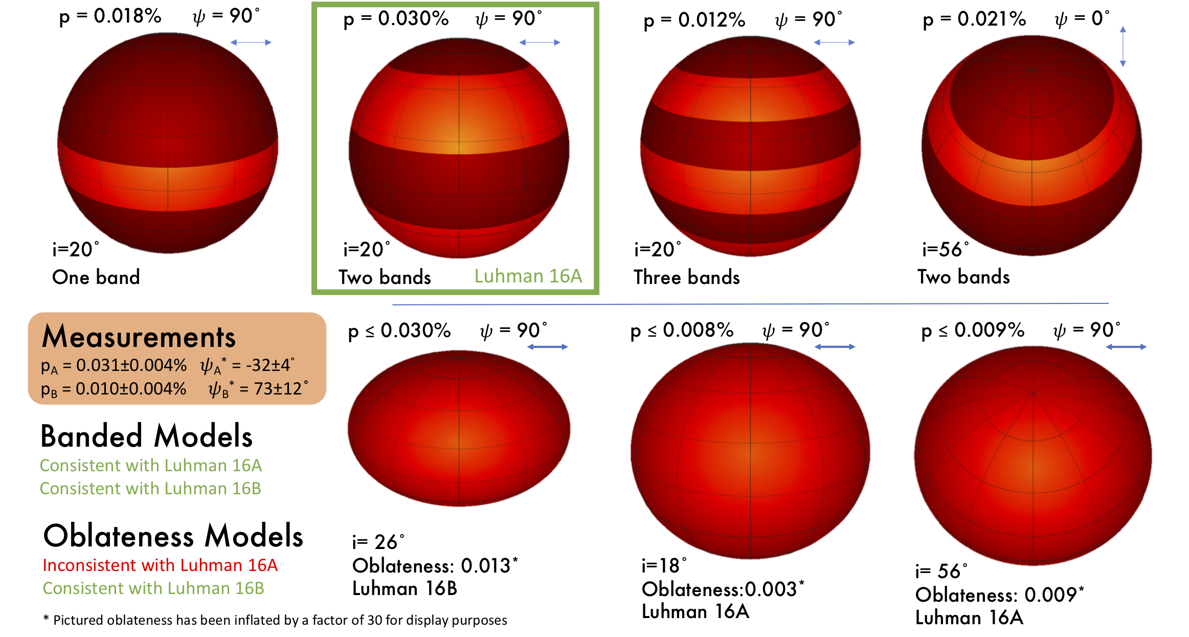 whereas the polarization measured from the B component could be due to either banded clouds and its inherent oblate shape. This result is incredibly exciting because