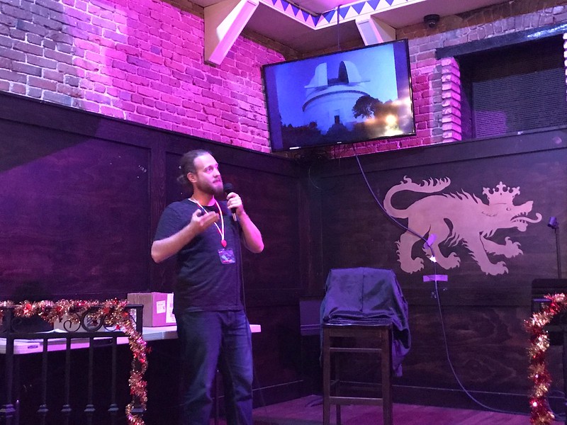Me giving a public talk on polarimetry at Astronomy On Tap Pasadena